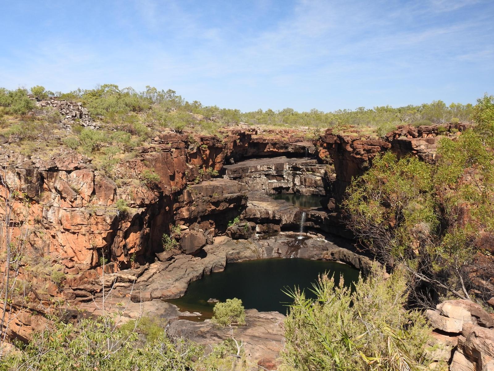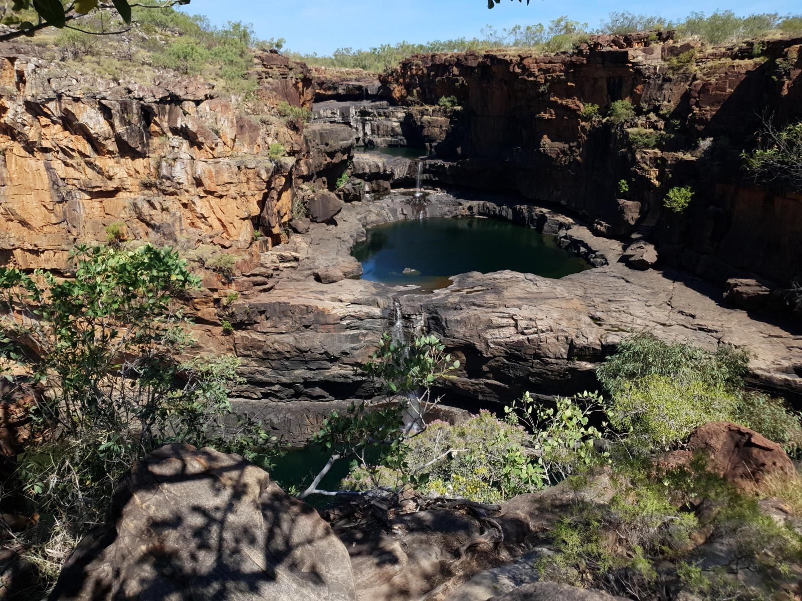 Gibb River Road & Kununurra 2019 Ioana, 2 February 202611 February 2026 We drove the Gibb River Road west to east, starting in Broome and finishing in Kununurra. After two preceding foggy mornings, on the day of our departure from Broome we woke up to a beautiful sunny morning. We saw a few brolgas on the side of the road out of Broome. We drove towards Fitzroy Crossing before turning left off the tarmac towards Tunnel Creek, which was our first destination on / just off the Gibb. It’s a place where allegedly Jandamara, an Aboriginal police officer turned freedom fighter, hid from police before being eventually killed at Windjana Gorge. It’s a system of caves and you have to walk through some muddy puddles to get to the other end which didn’t make me feel very comfortable since I knew there were fresh water crocodiles there. There was also a tree full of flying foxes (aka fruit bats). From there we drove another 20km or so to camp at Windjana Gorge – first proper camping on the Gibb. The camping site was ok, with unexpected flushing toilets and warm showers! We had a quick look at the freshies that evening but we only did the proper whole-length walk the next day. The river bed was dry with some puddles every here and there where freshies were sunbathing. The end of the walk was somewhat abrupt to a simple sign “end of walking trail” rather than a physical end. We got much better views of the Windjana Gorge residents next morning. From Windjana Gorge we drove to Silent Grove to camp for the night and see nearby Bell Gorge. It was not a good day… first of all our friends’ car had a flat as we arrived at Silent Grove. The walk to Bell Gorge was quite nice but unfortunately I decided to have a dip in the water… what I didn’t realize was how slippery the algae-covered rocks were so I went in much faster and deeper than I expected! On the way back to Silent Grove (on horrendous corrugations) Emma also had a flat, so we deflated the tyres to even lower pressures. That night we had a nice surprise at the camping grounds as they screened some short films made by local people which were quite nice. Day 3 we drove from Silent Grove to Adcock Gorge first. The road off Gibb was not too bad initially but the last kilometer or so was really rocky and rough so we decided to walk that last bit. The walk was quite nice, past a lily pond. The gorge itself is quite small and the water was quite green / not inviting for a swim. That’s where we first met the red dog, with a young couple from Margaret River who were taking their time to get to Gold Coast. From Adcock Gorge we went to Galvans Gorge which was quite close to the main road. On the way we stopped at Imintji community store (got some Diesel, ice creams, no tyres fixed, watched some Aboriginal women dot painting and two camp dogs catching ants), then at Over the range tyre shop to have the tyres fixed – 500 dollars a tyre, which was probably reasonable considering the location and lack of competition! We finished the day driving to Mt Barnett station where we camped for the night. It was nice to see the cows going back home past the gate / station. The camping grounds themselves were ok, just very busy and with not very good ablution facilities (cold water, only 2 showers…). In the morning we went to Manning Gorge. The walk starts off Mt Barnett camping grounds. There is a dinghy to go across a river crossing right at the start, but there was a queue of old people so we ended up walking around it… for quite a while and in quite tall bush. Luckily no snakes! The gorge itself was really nice, probably the best of the whole trip. And it was full of fish very keen to have some bread crumbs. From Mt Barnett we drove to Drysdale River station planning to go to Mitchell plateau the next day. The camping grounds at Drysdale were very, very dry and dusty. But the facilities were good, clean and had enough hot water for all campers. We got very closed to being talked into catching a flight + helicopter instead of driving as the hosts told us that the road was badly corrugated. But lucky we didn’t as the drive was probably much nicer than if we had flown! The kitchen staff at Drysdale cooked a really nice dinner and we were joined by Roger, the blue-winged kookaburra for the meal. In the morning we took off towards Mitchell Plateau. First we stopped at two sites of Aboriginal rock painting – where we saw Bradshaw figures (aka Gwion – the long, slender black figures) and Wandjina paintings – the extraterrestrial looking faces with no mouths). The drive was interesting from many points of view. The landscape kept changing quite a bit and included patches of rainforest, shrubs, grassland and Livistona palms. The road was ok in parts but about 40 km were just really, really bad corrugations where we only did about 40 kph and didn’t think we would escape without major car damage! Camping there was really nice as we had the camping grounds to ourselves. At nighttime it was slightly eerie as dingoes were howling. In the morning we took off quite early to walk to the Mitchell falls. We walked to the front of the falls and had the best lunch spot ever overwatching them. Once back to the campsite we even had the energy to do the river lookout walk to see the sunset. From Mitchell Falls campground we drove back past Drysdale and kept going to Ellenbrae (where we stopped for scones) and then our final destination for the day, Home At Ellenbrae there were lots of double-barred finches there and also a cute cuddly dog (on a diet)! As we approached Home Valley Station we came across the famous top-of-the-hill view towards the Pentecost River and the Cockburn Range, which was still an awe moment even though we were expecting it. Home Valley station was quite nice – well-maintained grounds, clean facilities, excellent food for dinner. It was definitely a memorable evening as we also watched Simona Halep beat Serena Williams in the the Wi