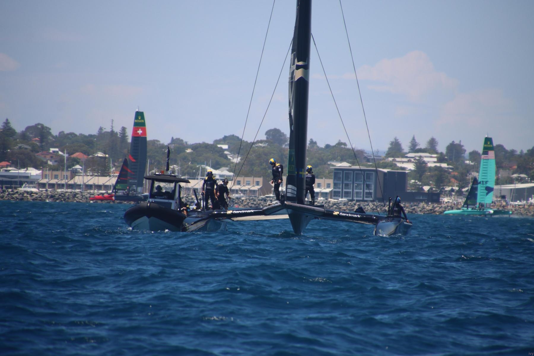 Some Viking cruise passengers were fortunate enough to pull into Fremantle as the SailGP boats were getting ready.